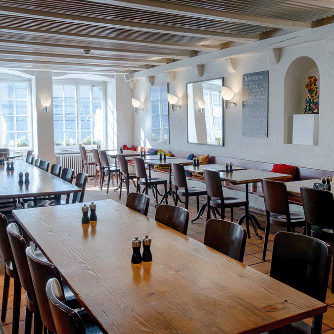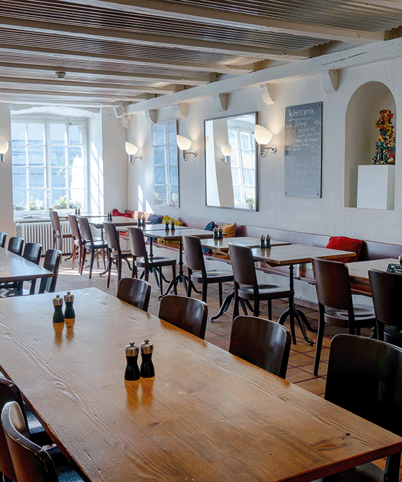Geniessen Sie unsere idyllische Lage in der Solothurner Altstadt: Im Sommer zusätzliche mit zwei Terrassen, eine mit Blick auf die St. Ursen-Kathedrale und eine mit Sicht auf den Riedholzplatz oder in unserem lauschigen Innenhof.